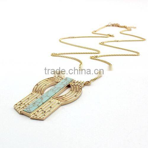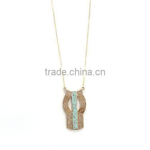 Fashion Metal Gold Plated Fake And Gold Plated Gemstone Europe Turquoise Necklace