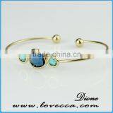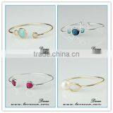 2017 Fashion Natural Brass Glass Stone Adjustable Wire Bracelet Bangle for Women