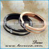 Love Couple Rose Gold Plating Stainless Steel Wedding Rings With Crystal Drill