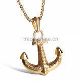2017 Fashion Jewelry Mens Gold Anchor Necklace Men Stainless Steel Hook Pendant