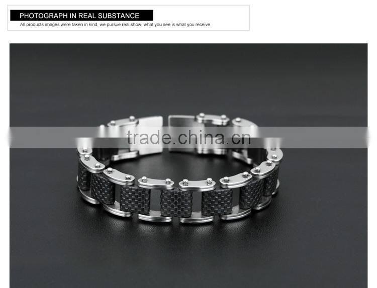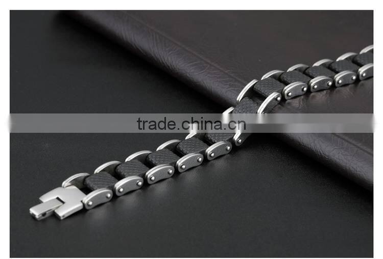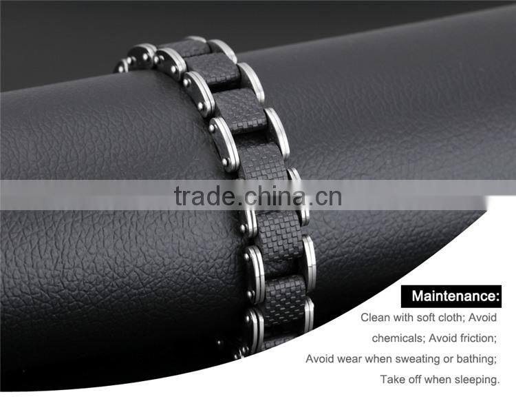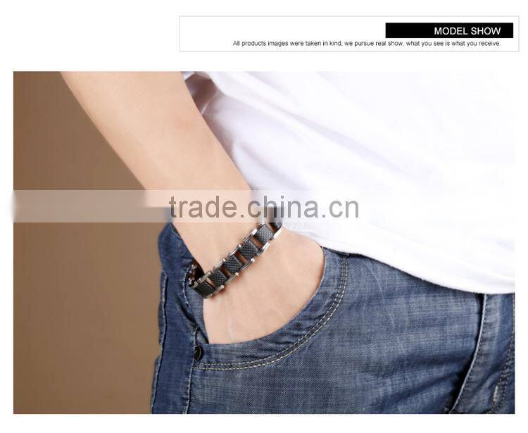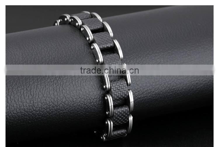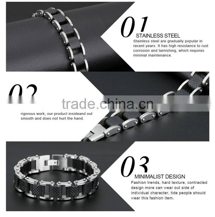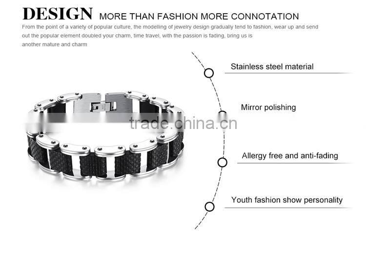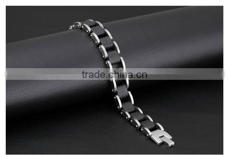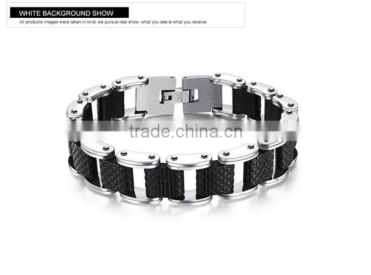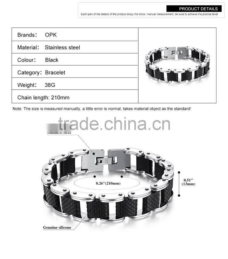 Square Genuine Sillcone Mens Bracelet Stainless Steel Motorcycle Biker Chain Design Casual Style Double Safety Claspes