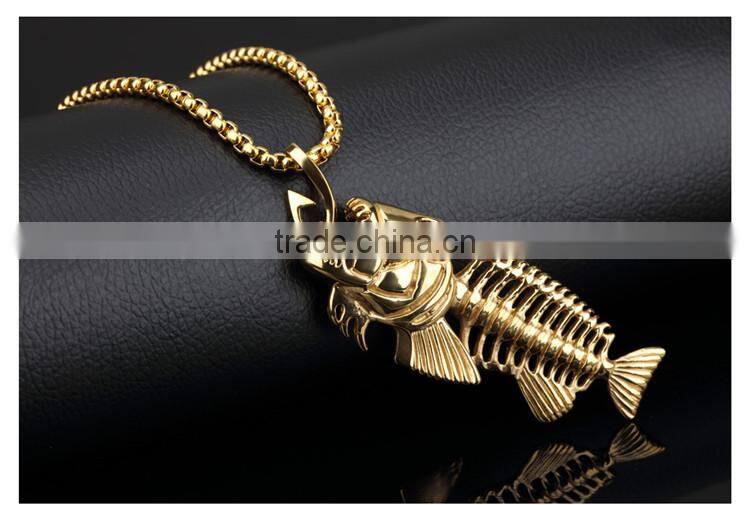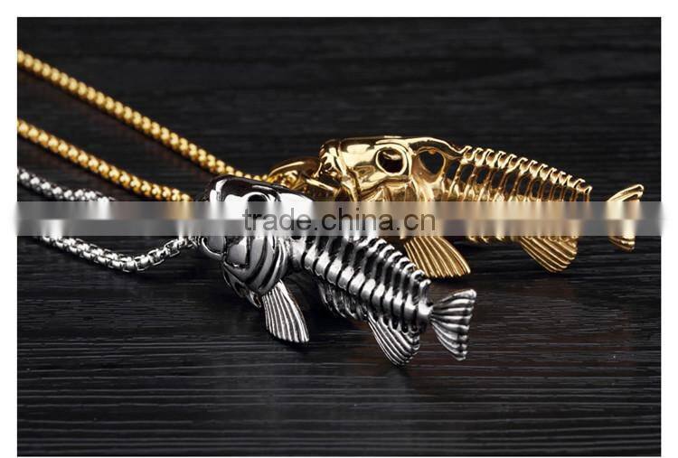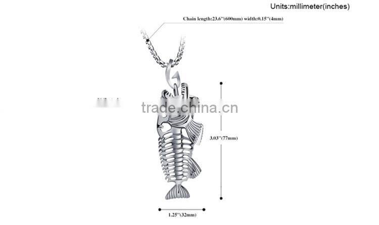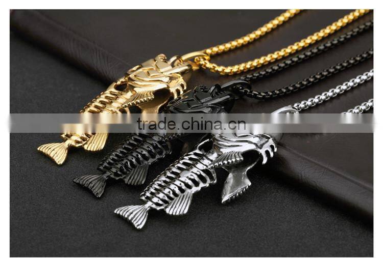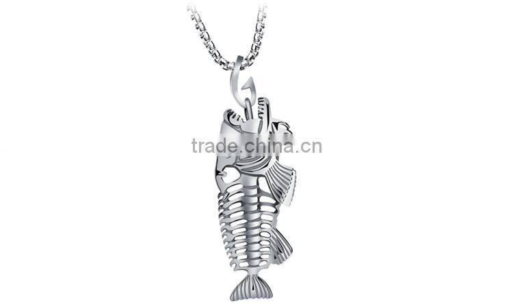 3 Colors Personality Jewelry Fishbone & Fishing Hook Pendant Necklaces Punk Style Men 316L Steel Link Chaincklace