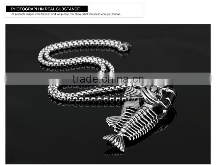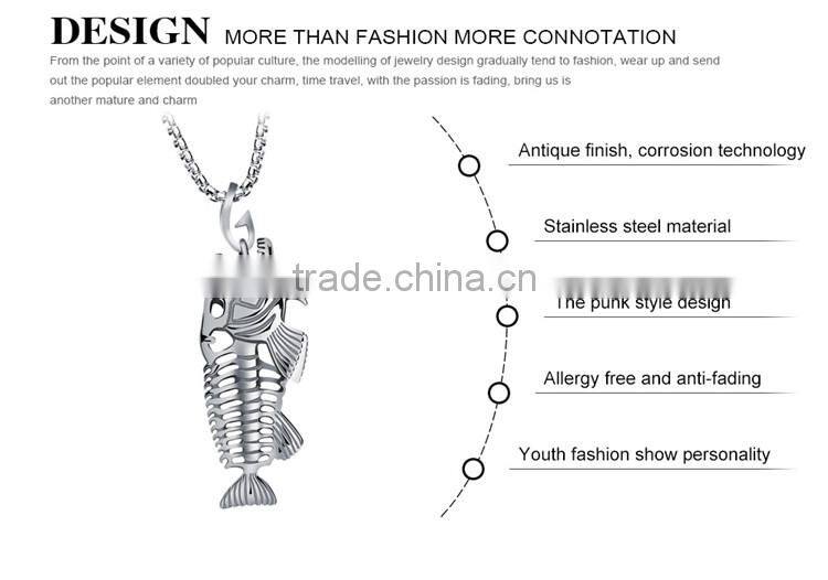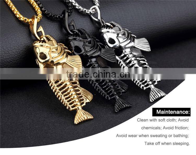 3 Colors Personality Jewelry Fishbone & Fishing Hook Pendant Necklaces Punk Style Men 316L Steel Link Chain