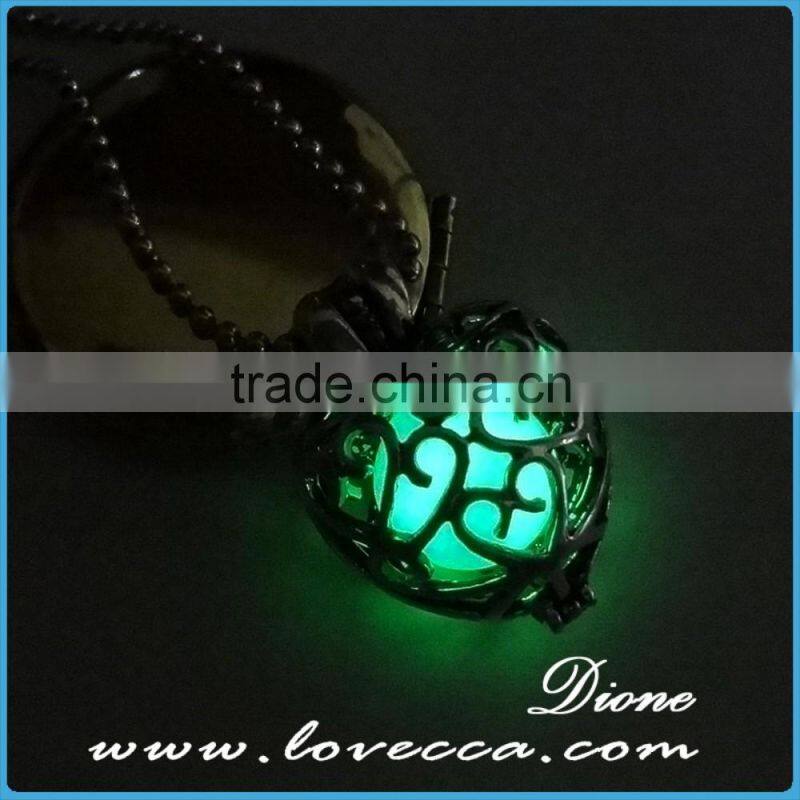 Cheap Alloy Luminous Glow in the Dark Heart Locket Charm Pendant Ladies Jewelry Necklace