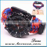 Outdoor Survival Waterproof Hot Selling Fashion Compass Watch Paracord Bracelet With Fishing Bag