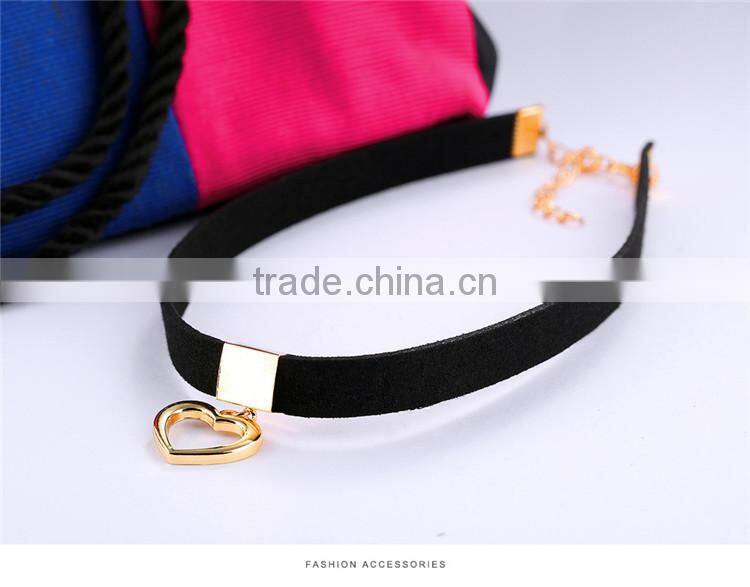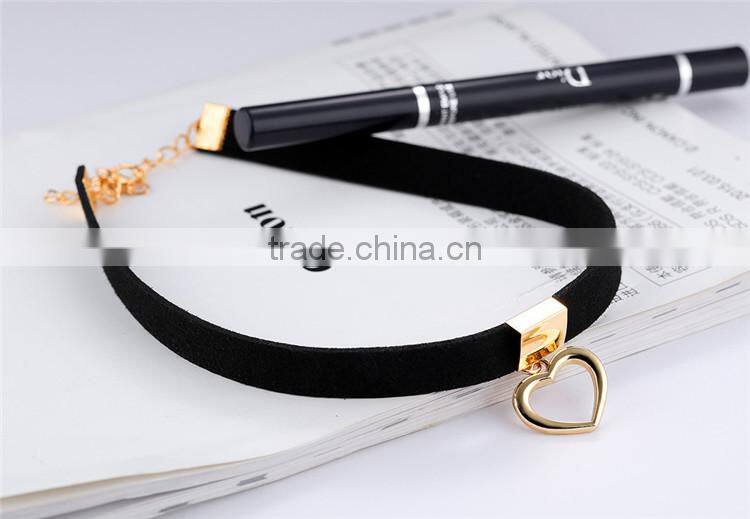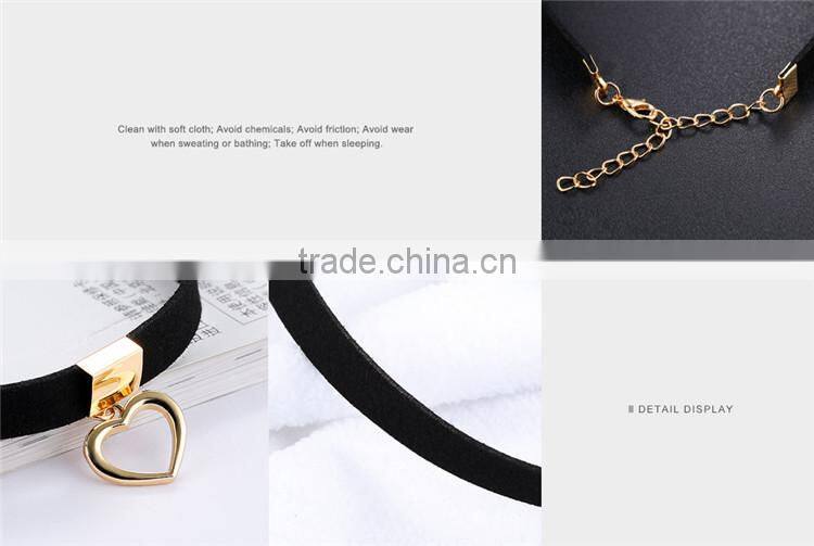 Gothic Choker Necklace For Women Hollow Heart Pendant With Smooth Flannel