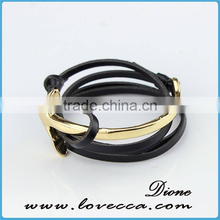 Fashion Jewelry Wholesale Leather Steel Anchor Hook Bracelet Men ,Custom Jewelry Nautical Bracelet Leather