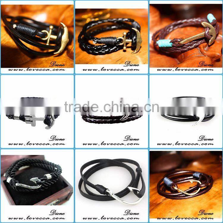 Fashion Jewelry Wholesale Leather Steel Anchor Hook Bracelet men ,Custom Jewelry Nautical Bracelet Leather