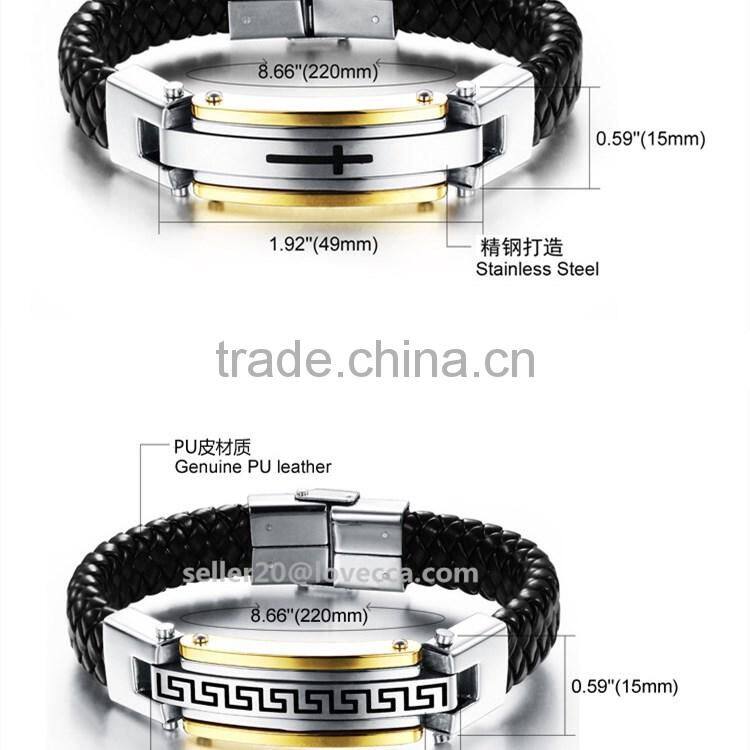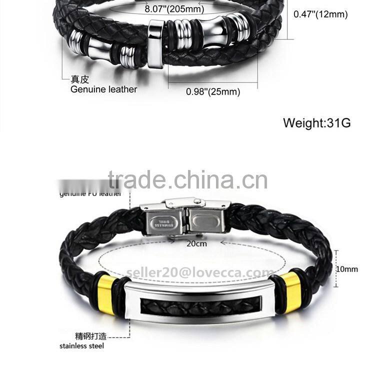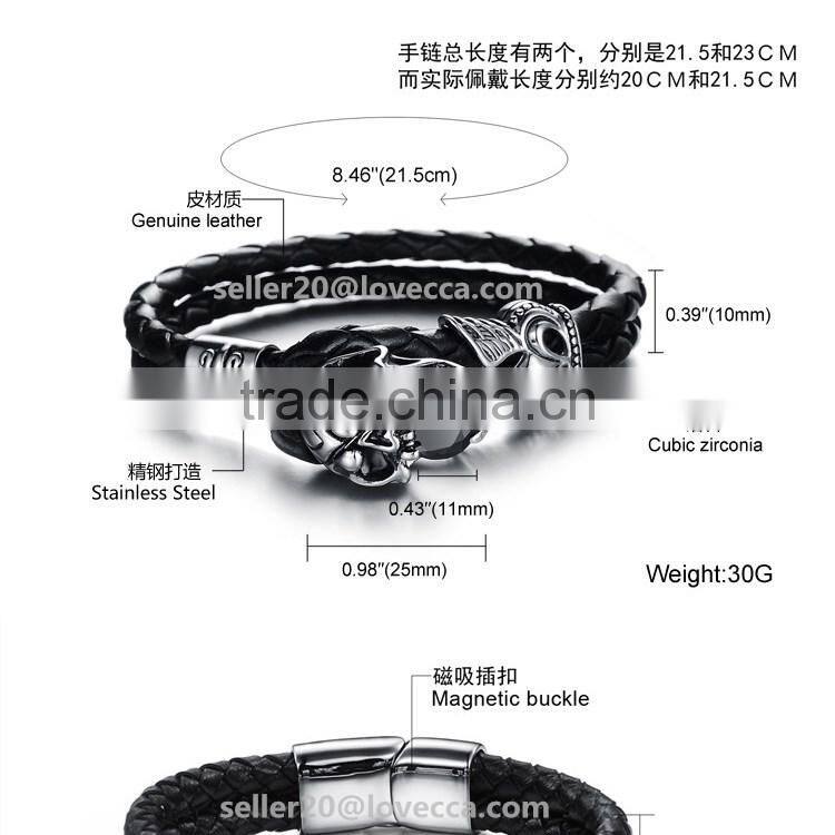 Fashion punk vintage men leather bracelet handcrafted women weave