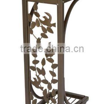 This Side Sofa Table slides neatly up to a couch or chair. This cleverly designed table offers a roomy wooden tabletop that provides the perfect place for a beverage, snack or book. It's side panel is an open metalwork design of delicate vines with burnished leaves. The bottom of the table neatly tucks under the sofa. Measures 21*30.5*54cm .