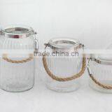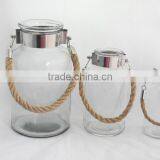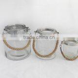 Tall Clear Glass Candle Holders With Hemp Rope Handle