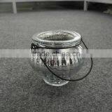 Ball Shape Lantern Silver Eletroplating Galvanized Glass Jar With Handle