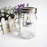 Clear Glass Candle Mason Handle Jar With Candle Tray and Lid