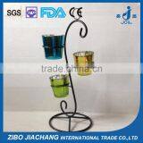 2016 New Design Acid Etch Glass Candle Holder Set With Metal Stand