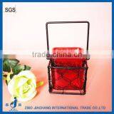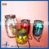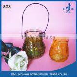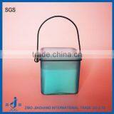 Colored Tea Light Glass Candle Holder With Hanging Metal Handle