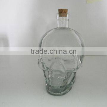 wholesale airtight skull head glass water /juice /beer bottle with lid