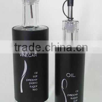 black plastic sleeves cylinder glass oil bottle