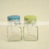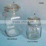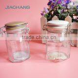 Wholesale Clear Square Clip Glass Jar With Glass Lid