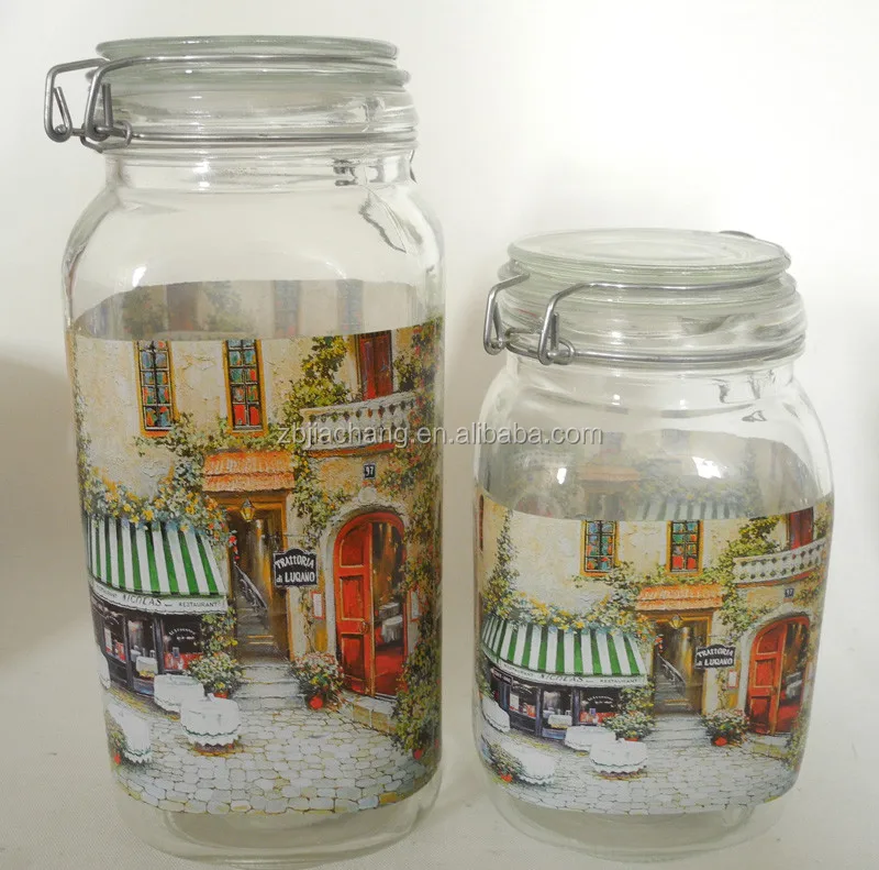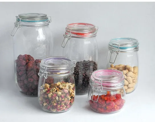 Clear Kitchen Food Storage Airtight Seal Lock Lid Jar/Glass Jar With Metal Clip