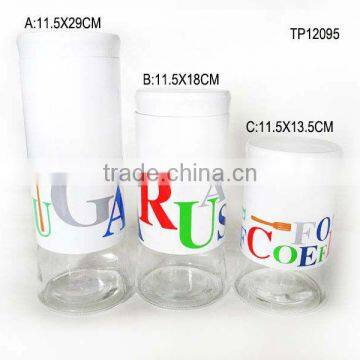 White Spraying Plastics With Big Letter Decal Cylinder Glass Storage Canister