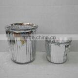 Mini Silver Electroplating Glass Vase Flower Pot With Vertical Stripe for Decoration