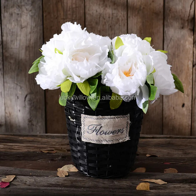 Factory Directly Supply Artificial Flower Basket Decoration Wicker Flowerpot