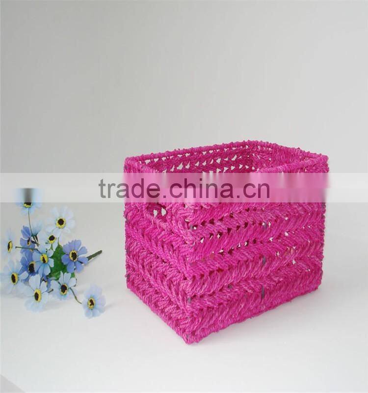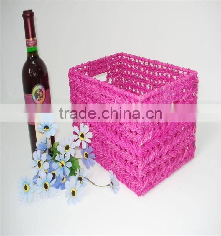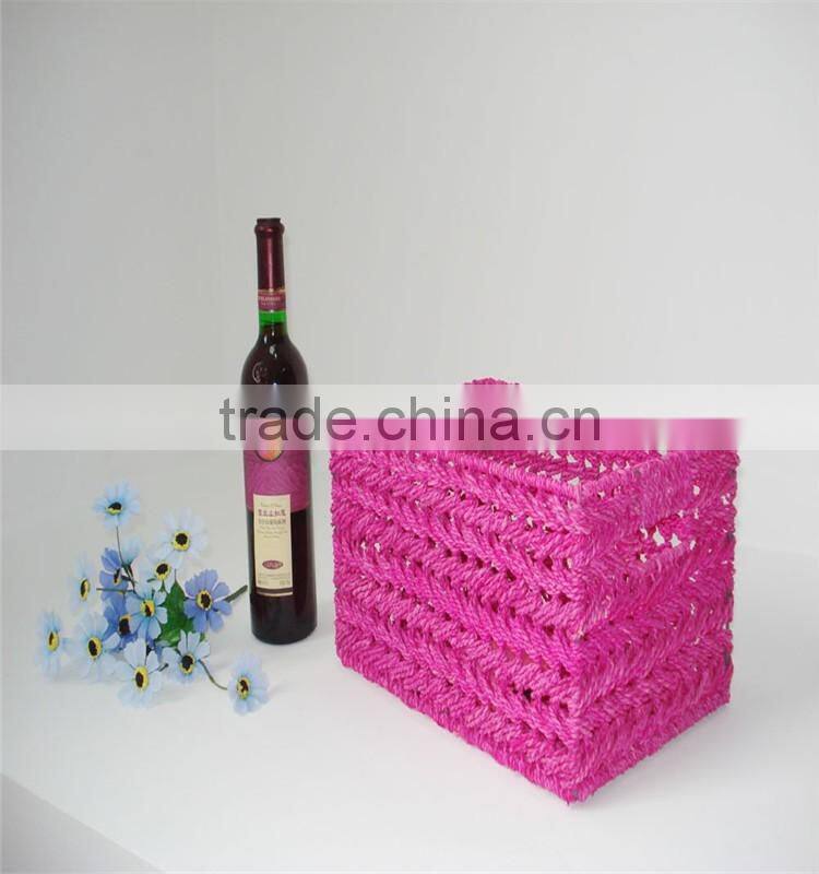 Home Garden Handwork Paper Rope Made File Book Storage Basket With Handle