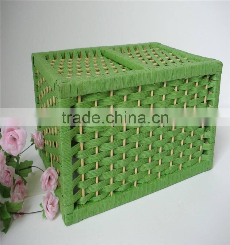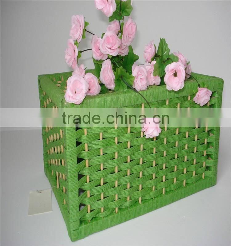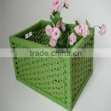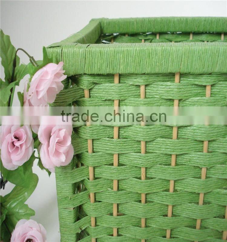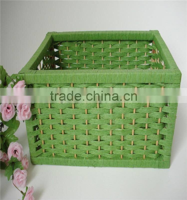 Wholesale Square Green Handmade Weaving Natural Paper Basket