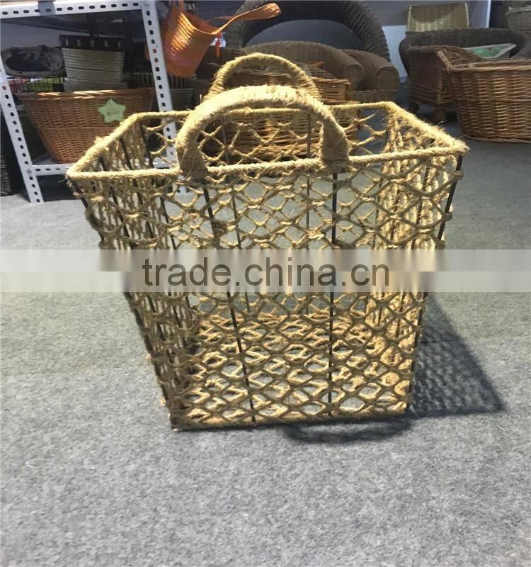 Wholesale Handmade Fashion Square Hemp Rope Basket