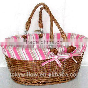 Popular Handmade Wicker Basket Chest With Gingham Liner