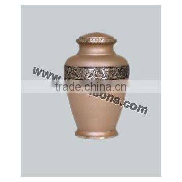 The urns we manufacture and export are made in metal or a combination of metals and other materials like glass. We can do different kinds of handwork on our urns and also do different kinds of finishing on them.