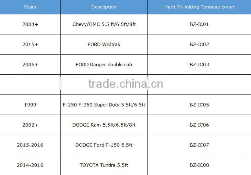 Home > Products > Auto parts > Hilux Revo/ Vigo Hard Tri-Fold Tonneau Cover 2009+