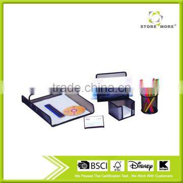 Durable Metal Mesh Office Pen Holder Letter Rack Paper Tray Stationery Set