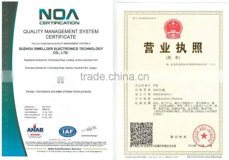 Suzhou Swellder Electronics Technology Co., Ltd.,founded in 2006,adjacent to Shanghai,is a professional supplier of various vacuum thermoforming products.Now we have our own Research&Development,design,and sales team through these 10 years,with experienced mould engineers,designers, marketing staff and export logistic,we could offer the samples and arrange the mass production in a short time.