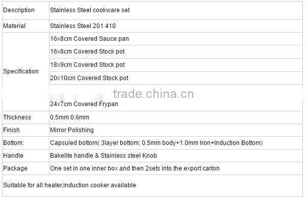 ITEM : 4pcs 5pcs 8pcs10pcs 12pcs classic & Indian stainless steel cookware set