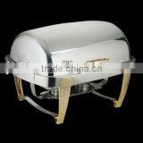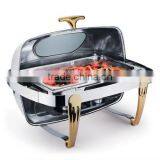 Luxury Rectangular Gold-plated Roll Top Stainless Steel Chafing Dish