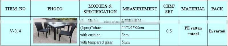 table and chair set rattan dining set wickerPE rattan+steel