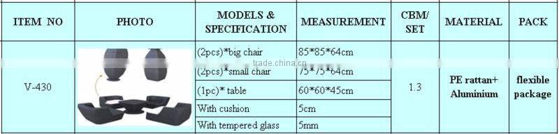 1). SGS HDPE rattan: best quality fibers to create the rattan, 100% high density polyethylene, resist the elements, also being recyclable and nontoxic; 1.4mm in thickness at least.
