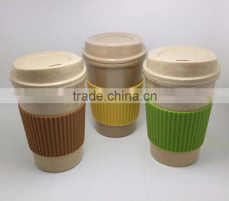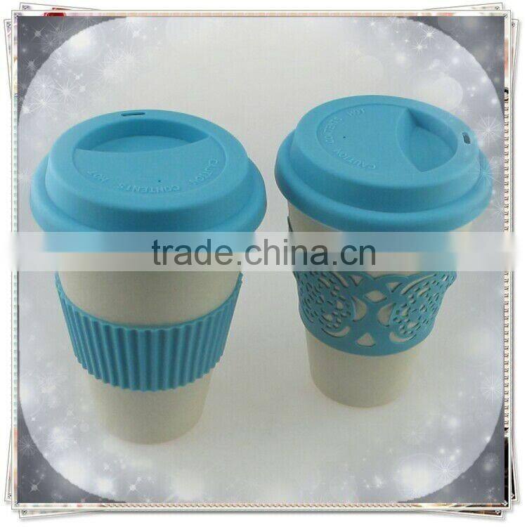 Take Away Coffee Cup Mug With Lid Biodegradable Bamboo Fiber Mug With Silicon Sleeve