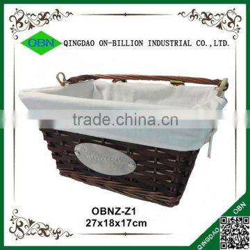Antique Handmade Wicker Bicycle Basket With Fabric Liner