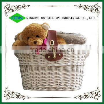 Hot sell new white empty bike basket wicker with lid