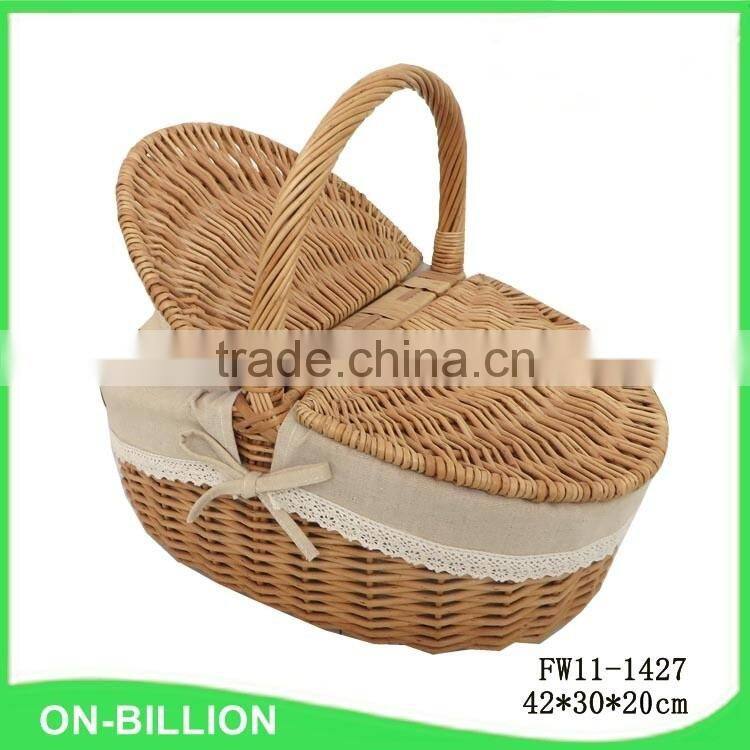 Handmade Wicker Material and Folk Art Style Willow Picnic Basket With Lid
