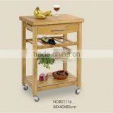 Natural Bamboo Kitchen Trolley With Whells