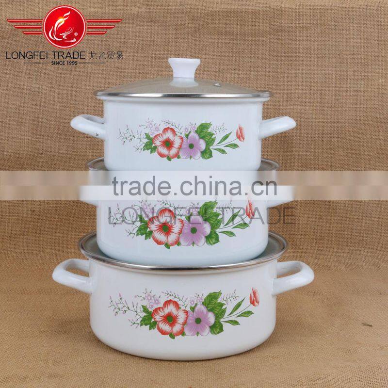 020856 new design hot sale 3pcs enamel cookware set with glass lid