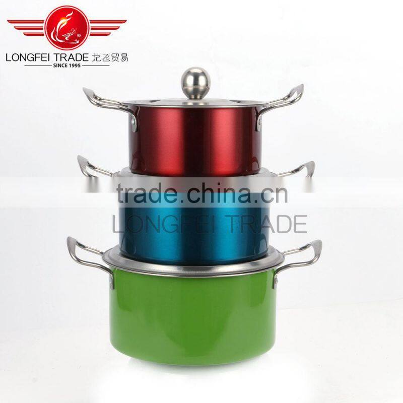 2016 3pcs Stainless Steel Color Steel Handle High Pot Set