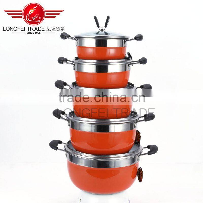 colorful 10pcs stainless steel best selling soup pot set/cooking pot set