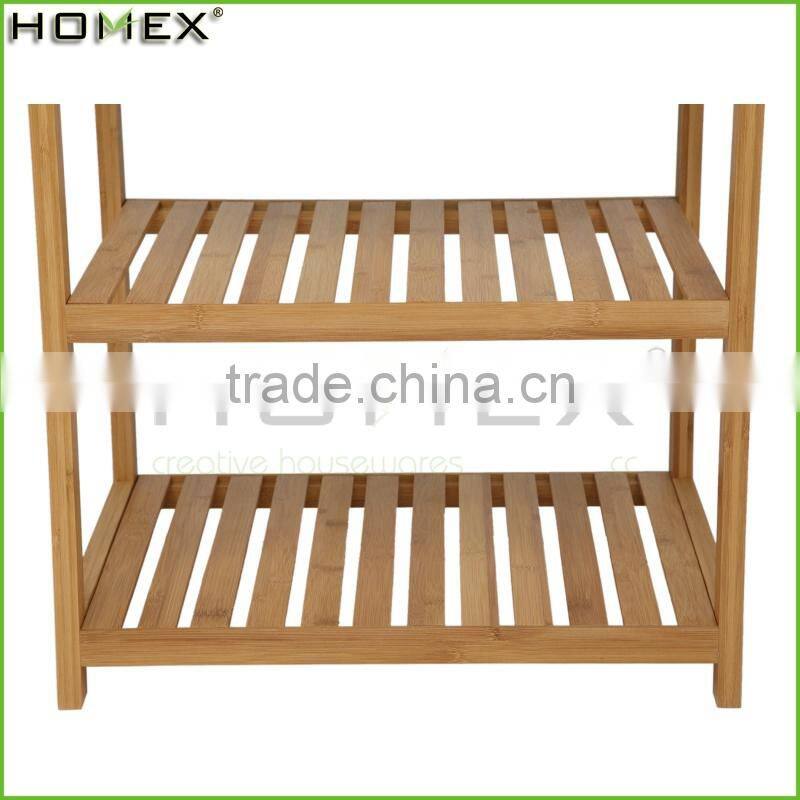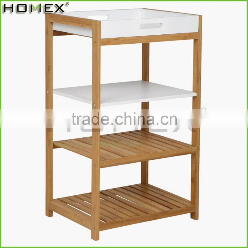 Bathroom Rack with 4 Shelves Storage Bamboo Rack Wooden Shelf and Tray/Homex_FSC/BSCI Factory
