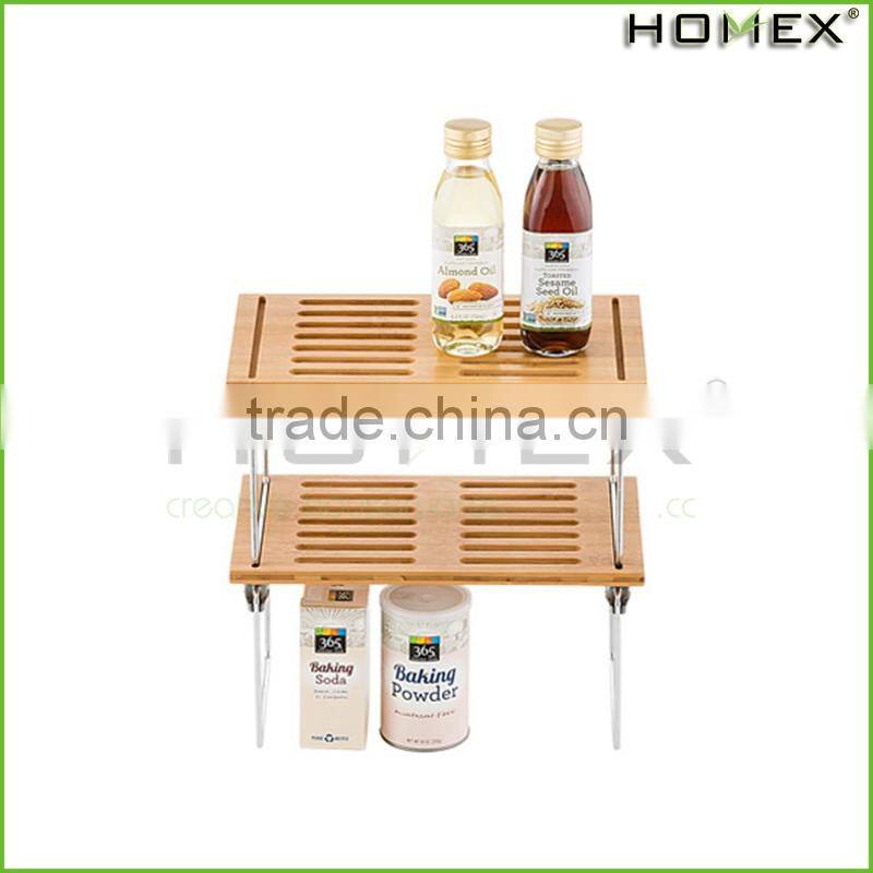 Bamboo steel stackable kitchen storage shelf Homex-BSCI