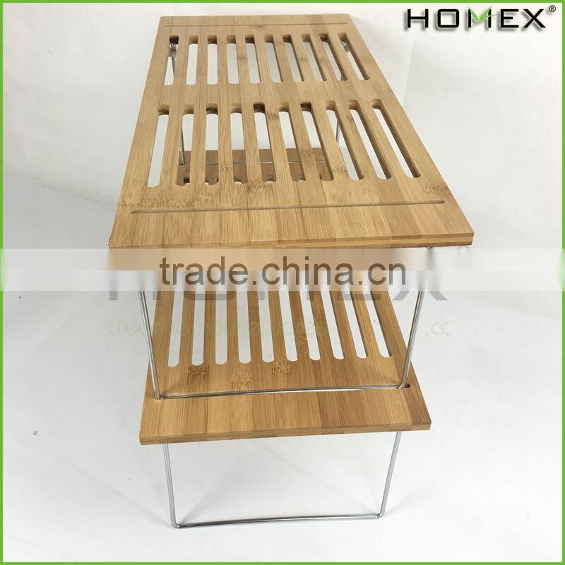 Natural bamboo kitchen stackable storage shelf Homex-BSCI