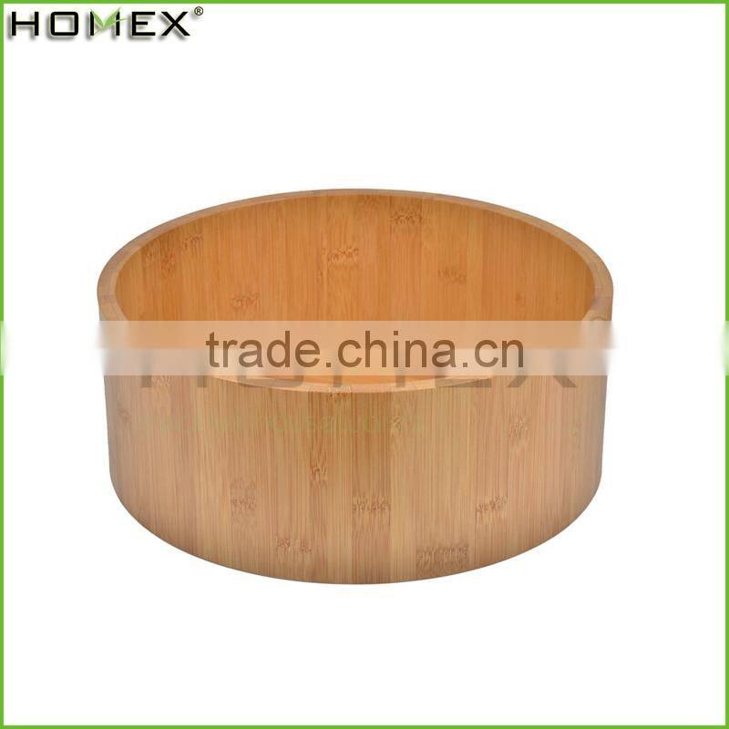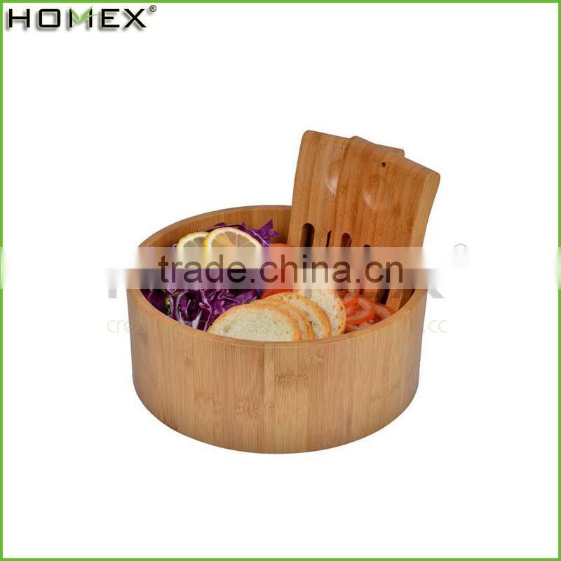 Natural Round Bamboo Wooden Salad Bowl Stand With Salad Hands/Homex_Factory